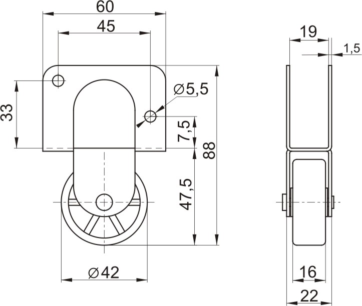 Колёсная опора 539 42 мм неповоротная 30 кг Чёрный