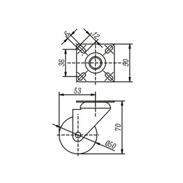 Колёсная опора 50 мм поворотная с площадкой резина стопор 40 кг Чёрный ФФМ