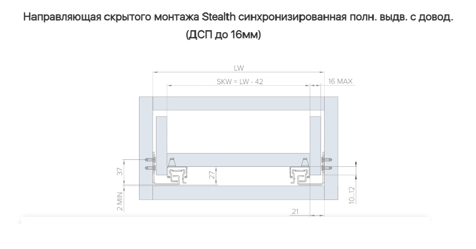Направляющая скрытая 270 мм доводчик ДСП до 16 мм AQ