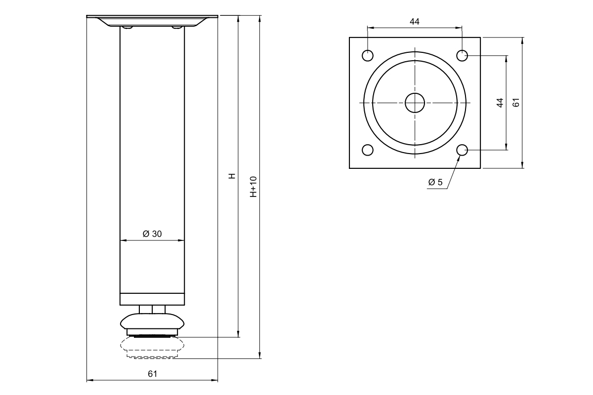 Опора круглая регулируемая 100-110 мм D30 мм Хром FIT