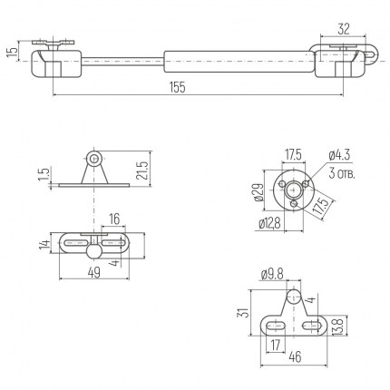 Кронштейн газ 60 Н Короткий Белый SETE