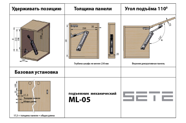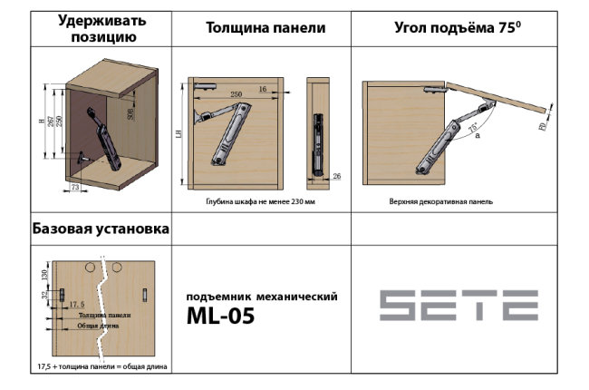 Подъемник механический ML-05-3 сталь+пластик 2-3 кг Хром SETE