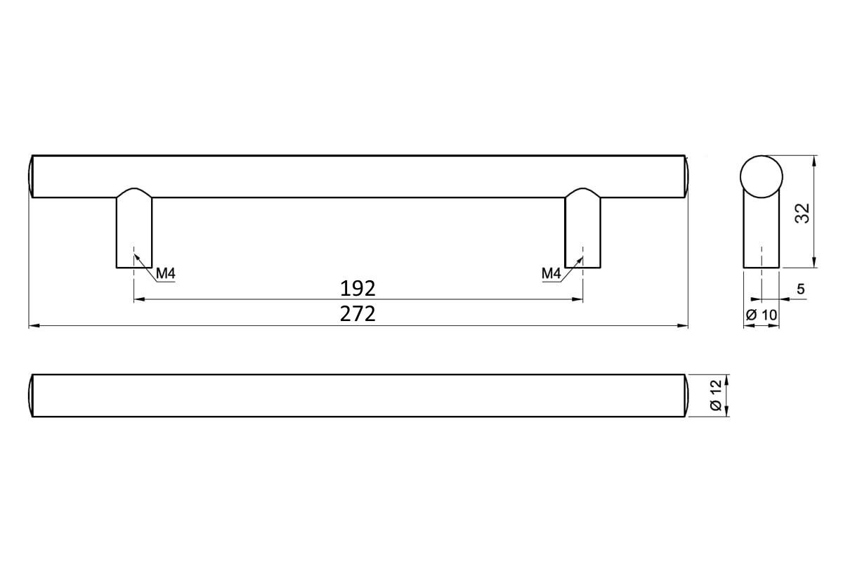 Ручка рейлинг FIT 192 Никель матовый с фаской