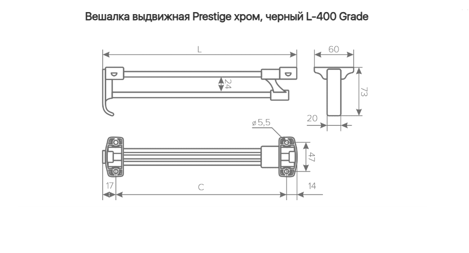Штанга выдвижная усиленная 400 Хром Grade