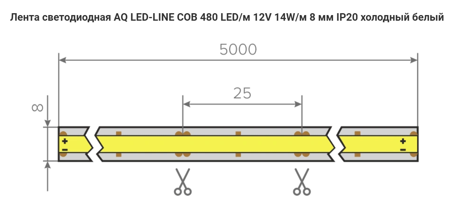 Лента COB 2400 LED 12V 70W 5м 8 мм IP20 Холодный белый AQ