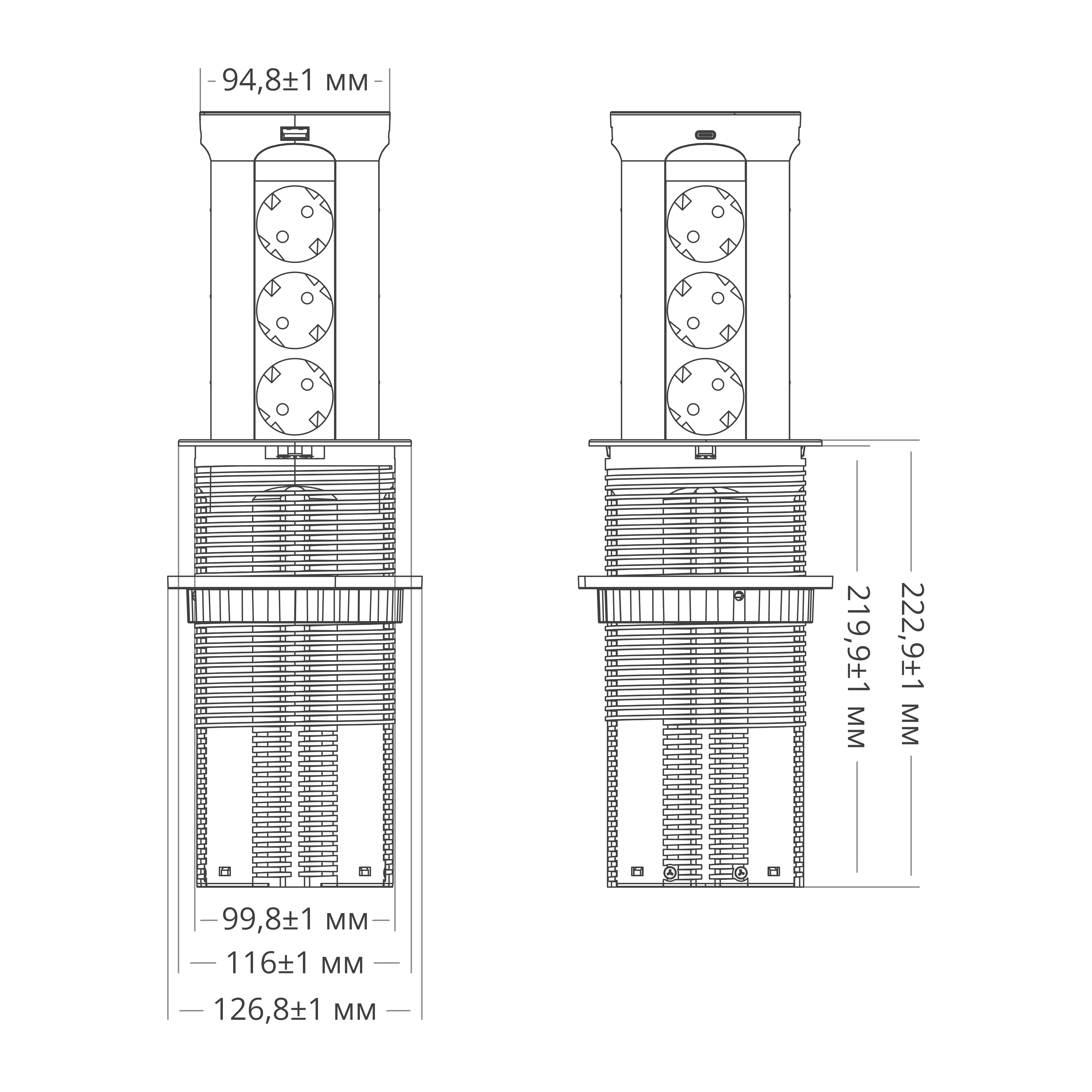 Размеры монтажного отверстия, ⌀100 мм