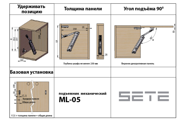 Подъемник механический ML-05-6 сталь+пластик 5-6 кг Хром SETE