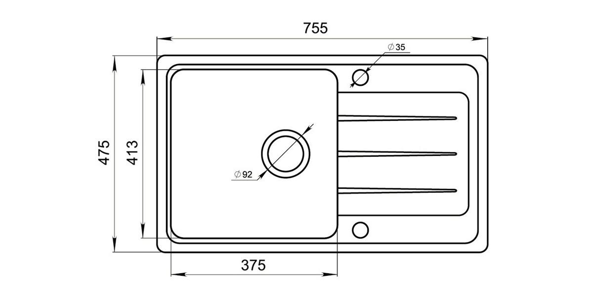 Мойка кварцевая АСТРЕЯ 50QV ГРИЗАЛЬ Чёрный