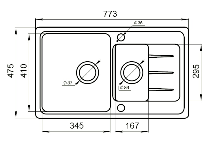 Мойка кварцевая двойная ЦЕРЕРА 60QV ГРИЗАЛЬ Чёрный