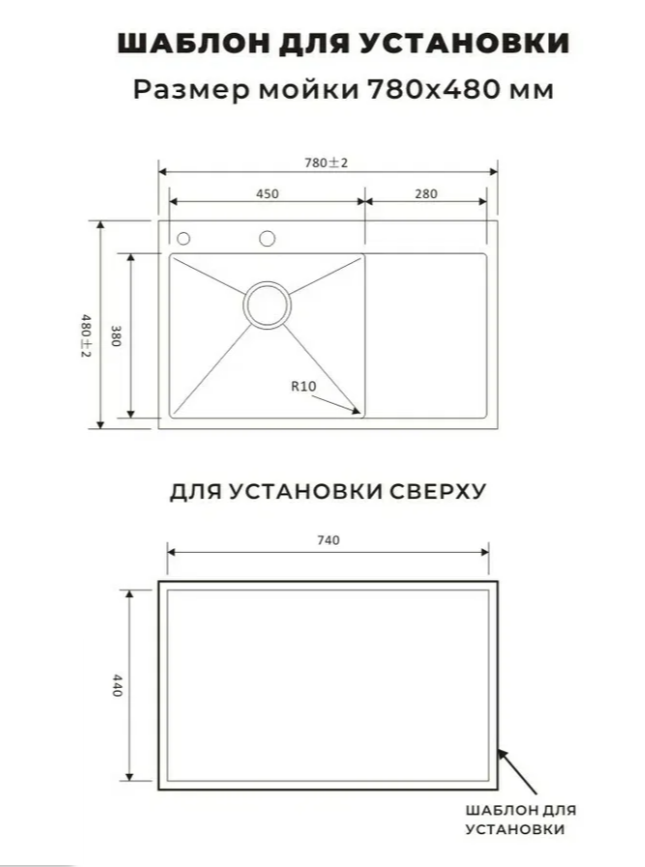 Мойка AVIVACOM 3мм 780*480мм Нано Сатин с крылом Левая