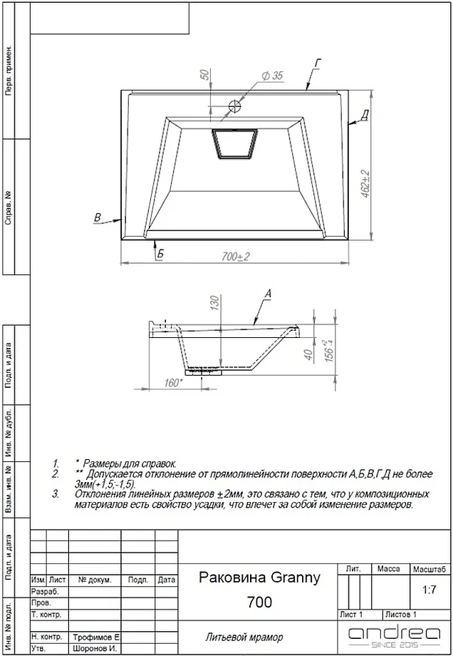Раковина GRANNY 700х460 130мм