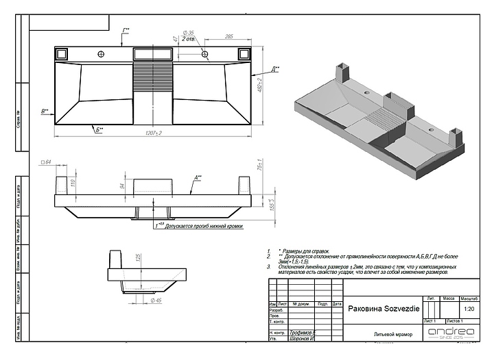 Раковина двойная SOZVEZDIE 1200х480 120мм