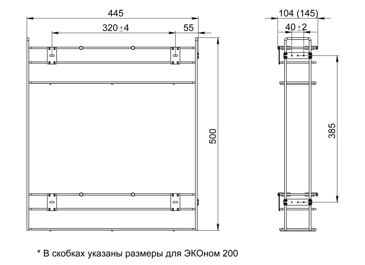 Бутылочница боковая 150-2 Графит левая без направляющих ЭКОНОМ ЮММ 15 кг.