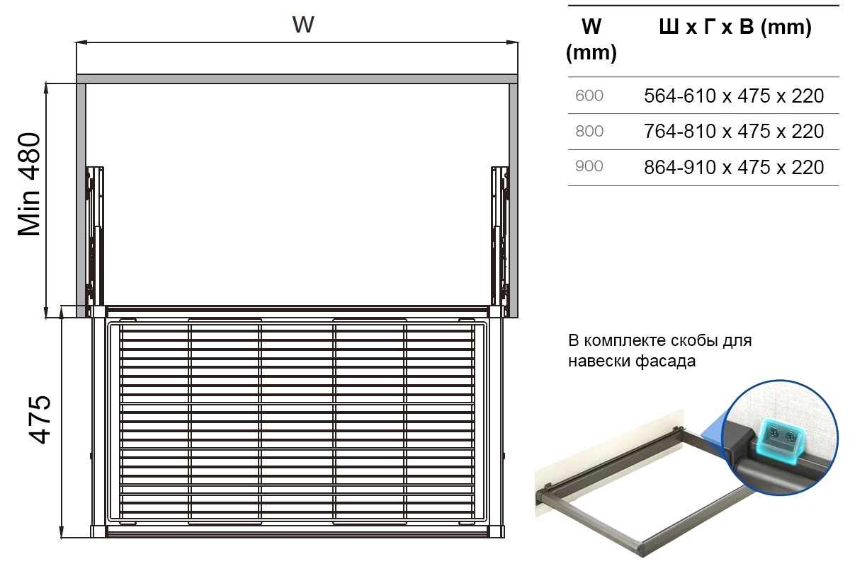 Выдвижная полка для одежды MOKA 900 с доводчиком CLIP-ON Unihopper