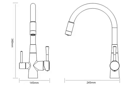 Смеситель для кухонной мойки под фильтр питьевой воды с гибким изливом Сатин/Чёрный