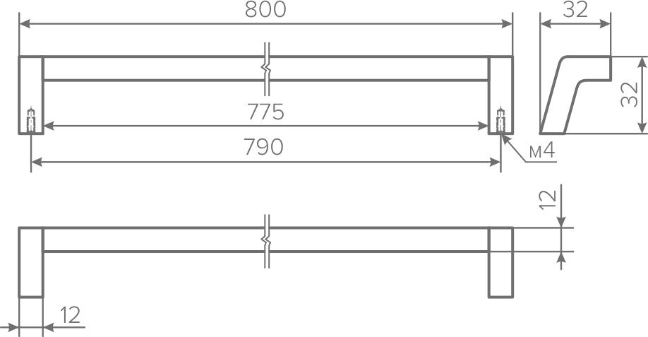 Размер: 800х32х32 мм