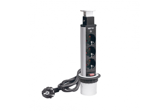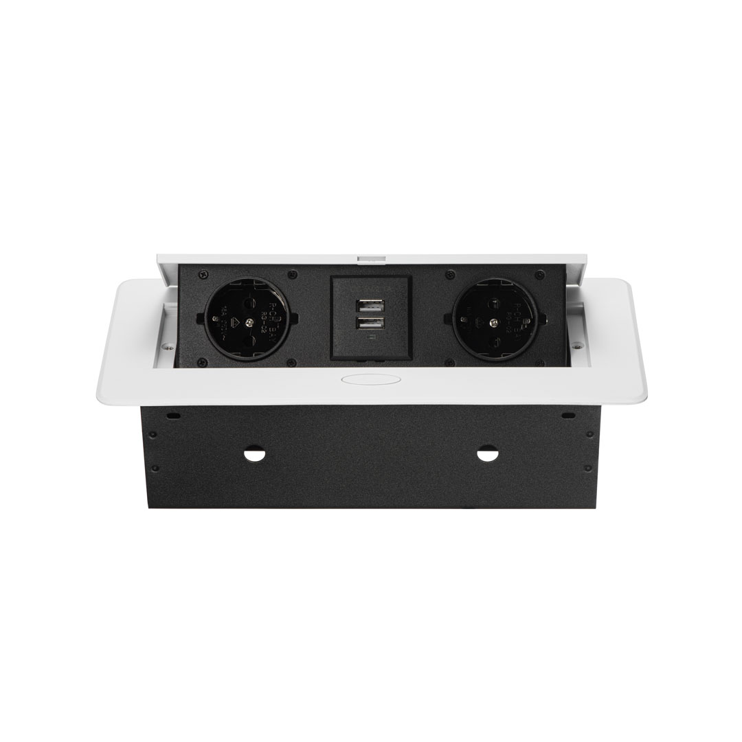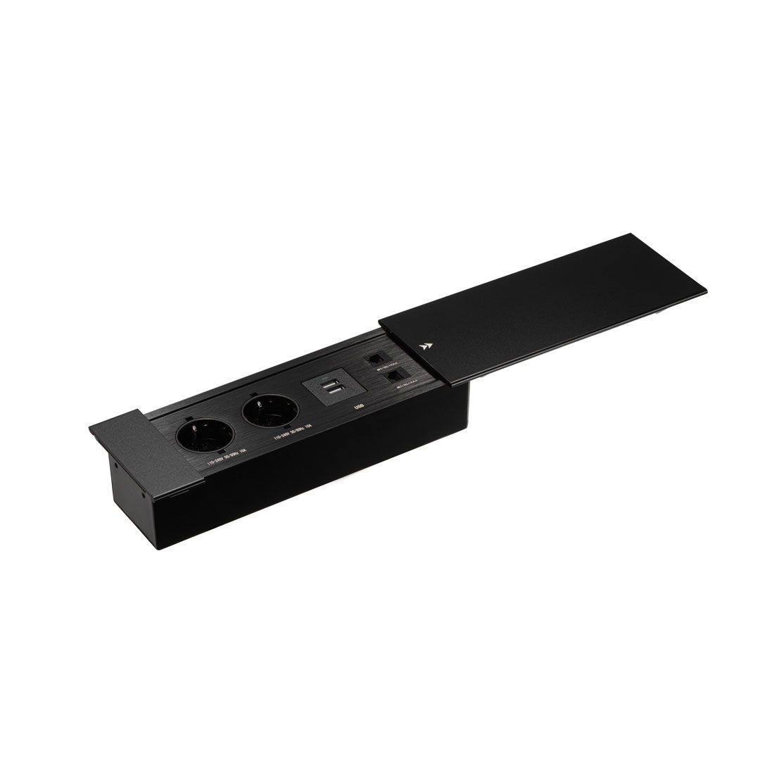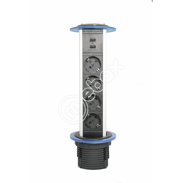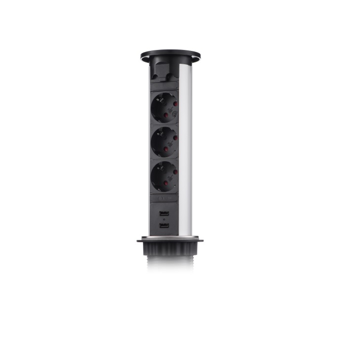 Удлинитель механический 735К 2 евро беспров.зар. 2 USB-А +2 RJ-45 (Ethernet), выдвиж. панель Серебро