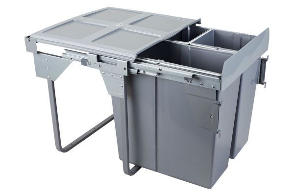 Контейнеры для сбора отходов на кухне. Выдвижная система на направляющих с доводчиком.