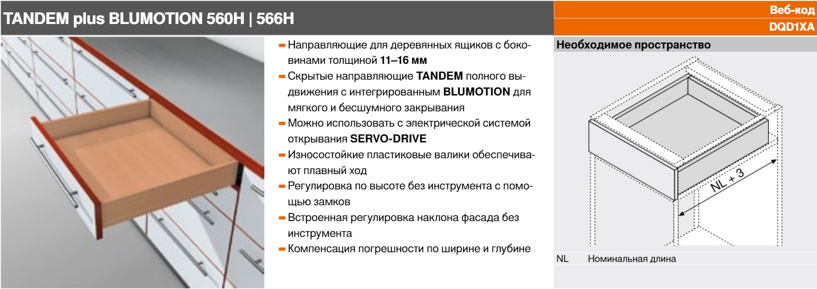 Направляющая шариковая скрытая 500 мм с пружиной Тандем BLUM L+R 30 кг.