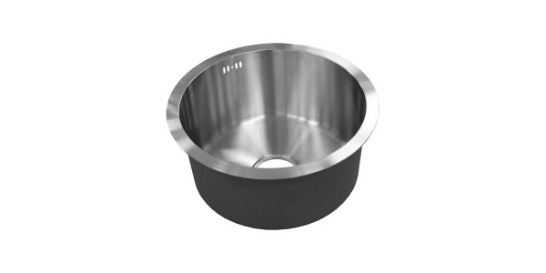 Мойка 420х496 мм с глубокой круглой чашей диаметром 370 мм и отверстием под смеситель на каплевидном надкрылке.