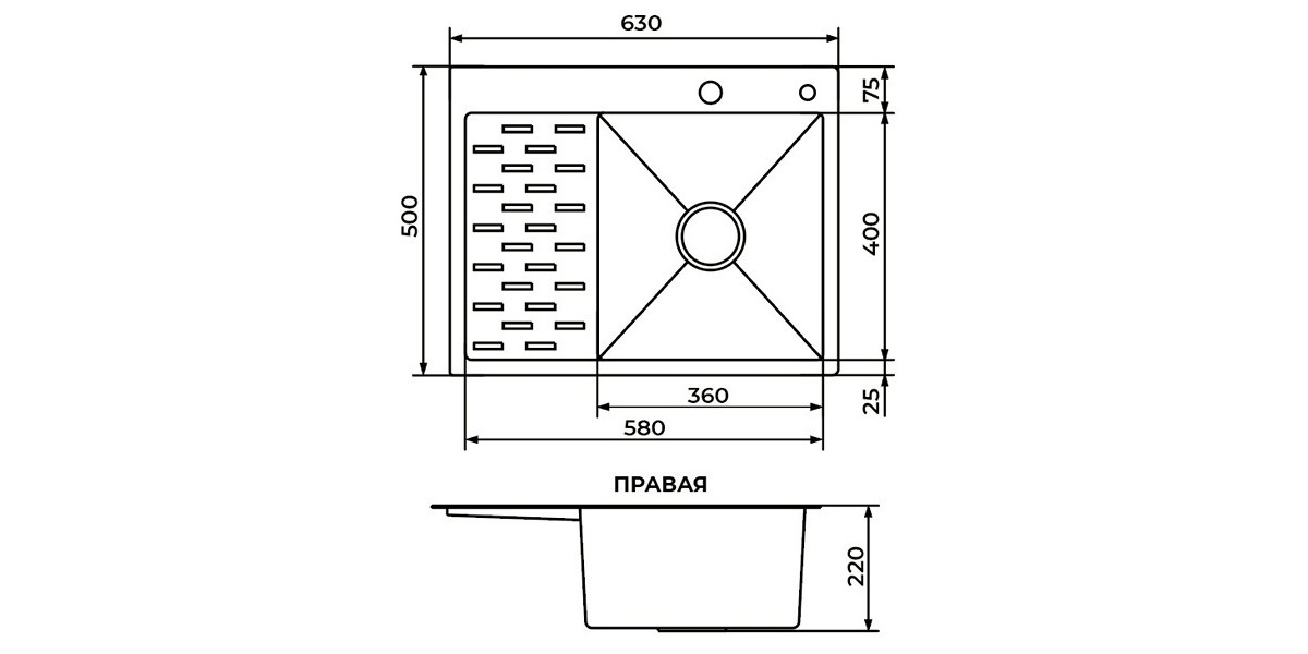 Мойка врезная прямая с крылом PR 6350 Графит 3мм Правая