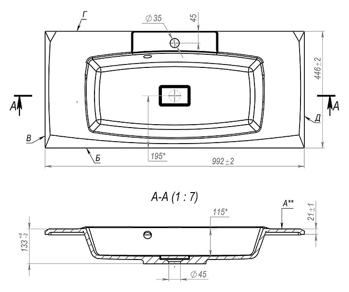 Общий размер: 1000 х 450 х 133 мм