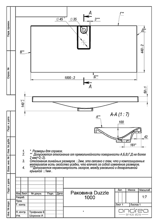 Диаметр слива: 45 мм