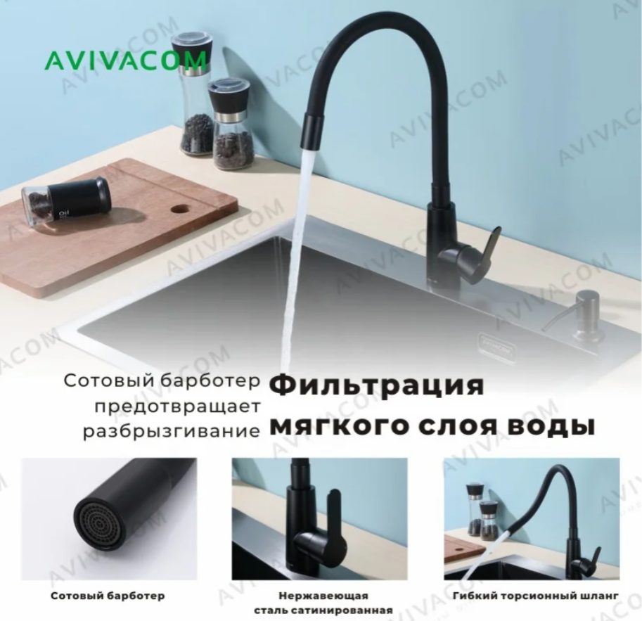 Излив: Гибкий упругий – обеспечивает гибкость в использовании и удобство при мытье.