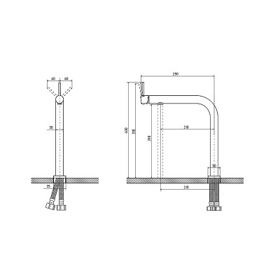 Смеситель опускается внутрь столешницы. Фиксация в двух положениях